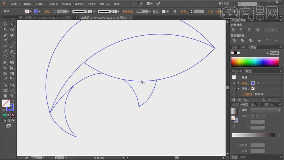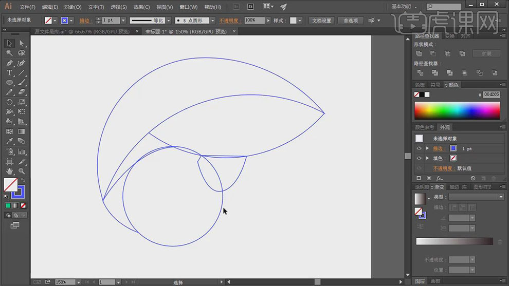 4、利用【椭圆东西】,绘制合适大小的正圆,利用【填充色东西】,绘制合适大小的正圆,单击【径查找器】-【剪去顶层对象】。具体结果如图示。绘制合适的曲线和径外形,利用【椭圆东西】!